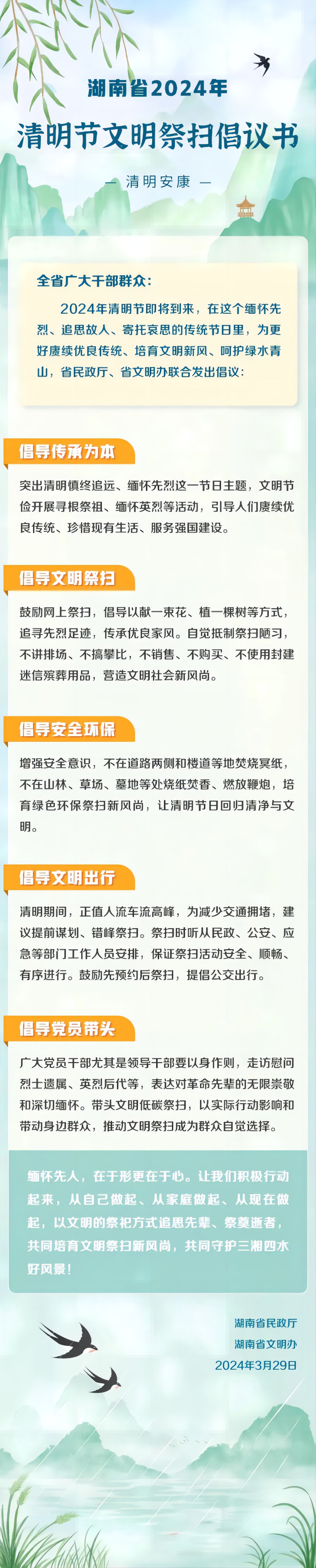 清明節(jié)文明祭掃倡議書(轉(zhuǎn)自湖南省民政廳、湖南省文明辦)